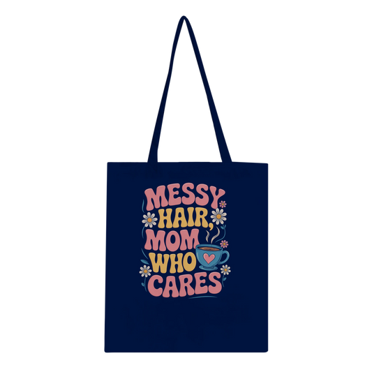 Messy Hair Mom Who Cares Tote Bag – Funny Reusable Cotton Bag for Moms