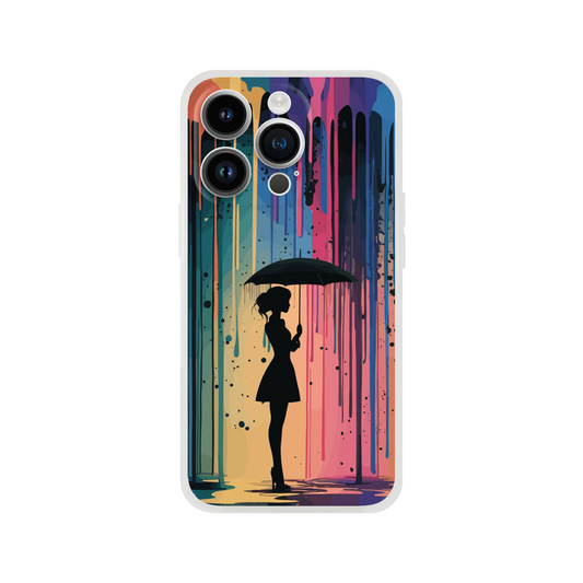 Minimalist Woman with Umbrella Flexi Phone Case – Vibrant Abstract Dripping Paint Art