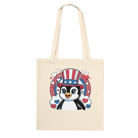 Patriotic Penguin 4th of July Premium Tote Bag | 100% Cotton Eco-Friendly Carryall | Durable & Stylish