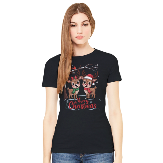 Cute Reindeer Couple Women’s Christmas Premium T-Shirt – Slim Fit Crewneck Holiday Tee