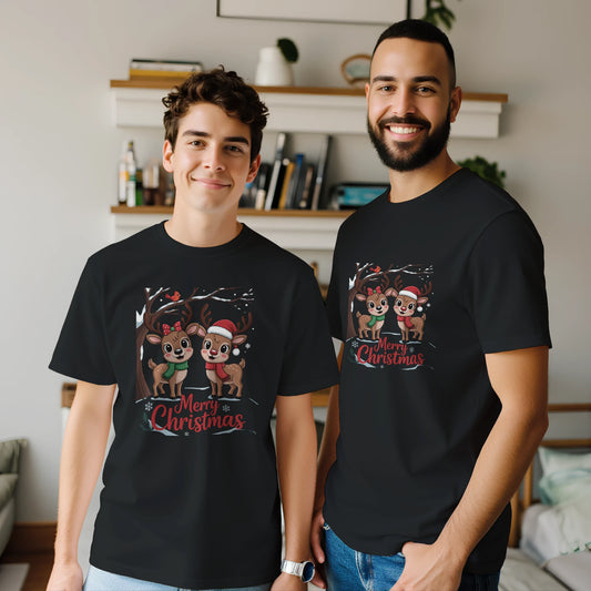 Cute Reindeer Couple Christmas T-Shirt – Premium Unisex Crewneck Holiday Tee