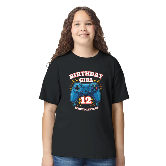 Birthday Girl "Time to Level Up" T-Shirt | Custom Age 7 to 12 | Classic Kids Crewneck