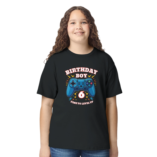 Birthday Boy T-Shirt – Time to Level Up | 1st to 6th Birthday Gamer Shirt for Kids