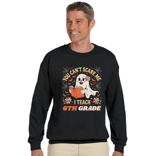 Classic Unisex Crewneck Sweatshirt – Halloween Ghost "You Can’t Scare Me, I Teach [Grade] Grade" – Customizable Teacher Pullover (1st to 6th Grade)