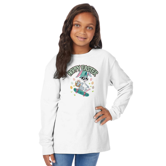 HOPPY EASTER Kids Long Sleeve T-Shirt – Cozy Cotton Easter Tee for Kids