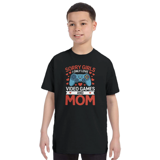 Sorry Girls I Only Love Video Games and Mom Kids T-Shirt – Funny Gamer Tee for Boys & Girls