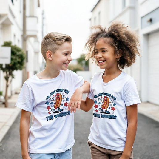 I’m Just Here for the Wieners Classic Kids Crewneck T-Shirt – Funny Hot Dog BBQ Tee for Boys & Girls