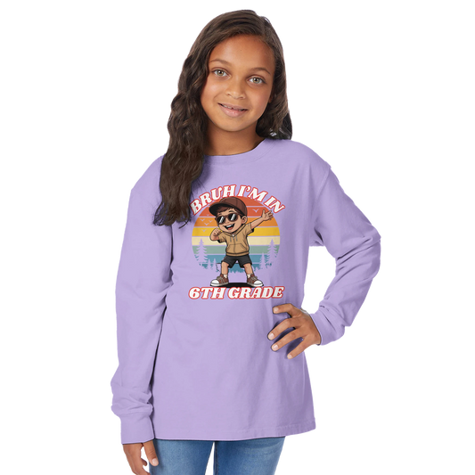 Kids Long Sleeve Crewneck T-Shirt – "Bruh I'm in [Grade] Grade" – Customizable from 1st to 6th Grade – Motivational & Comfortable