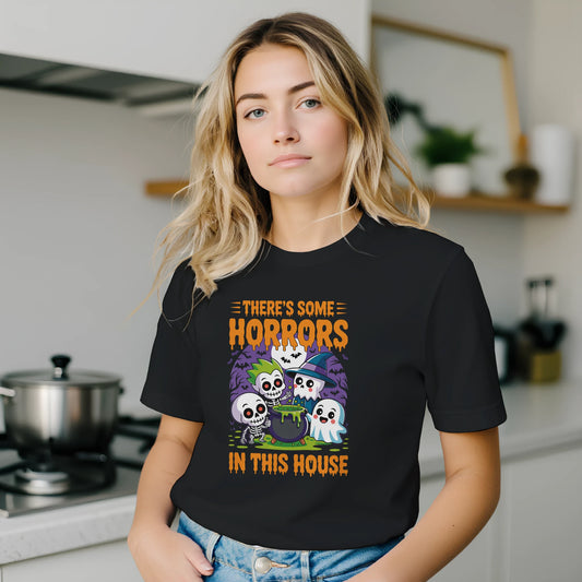There’s Some Horrors in This House” Halloween T-Shirt – Premium Unisex Crewneck Spooky Graphic Tee