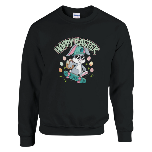 "HOPPY EASTER" Funny Bunny Unisex Crewneck Sweatshirt – Easter Holiday Pullover