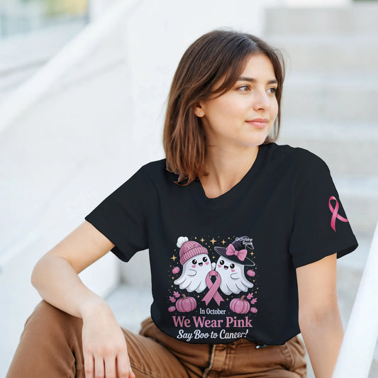 In October We Wear Pink Say Boo to Cancer T-Shirt, Breast Cancer Awareness Heavyweight Unisex Tee