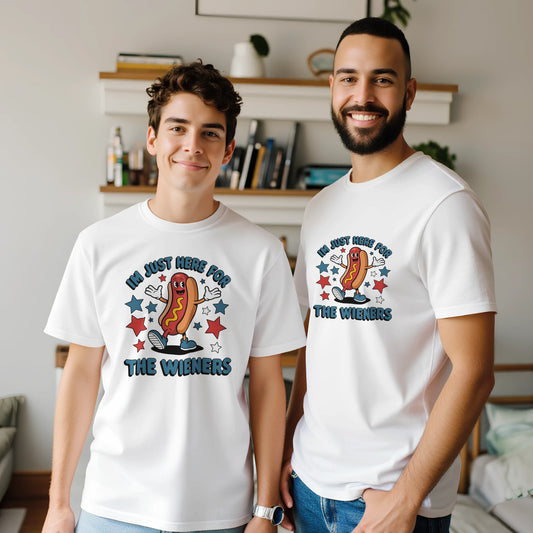 I’m Just Here for the Wieners T-Shirt – Funny Hot Dog BBQ Cookout Tee, Premium Unisex Crewneck