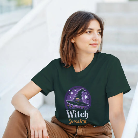 Personalized Witch Hat Halloween T-Shirt – Custom Name Unisex Crewneck Tee