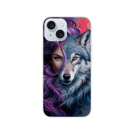 Wolf & Woman Fusion Flexi Phone Case – Mystical Art Illustration | Clear Protective iPhone Case