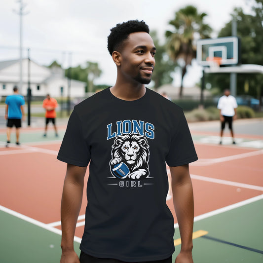 T-shirt Lions Girl Messy Bun – T-shirt unissexo divertida para fãs de desporto.