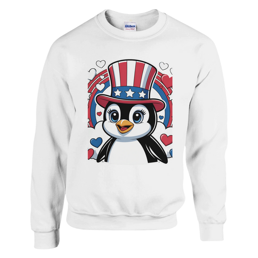 Sweatshirt unissexo clássica com estampado de pinguim patriótico para o 4 de julho